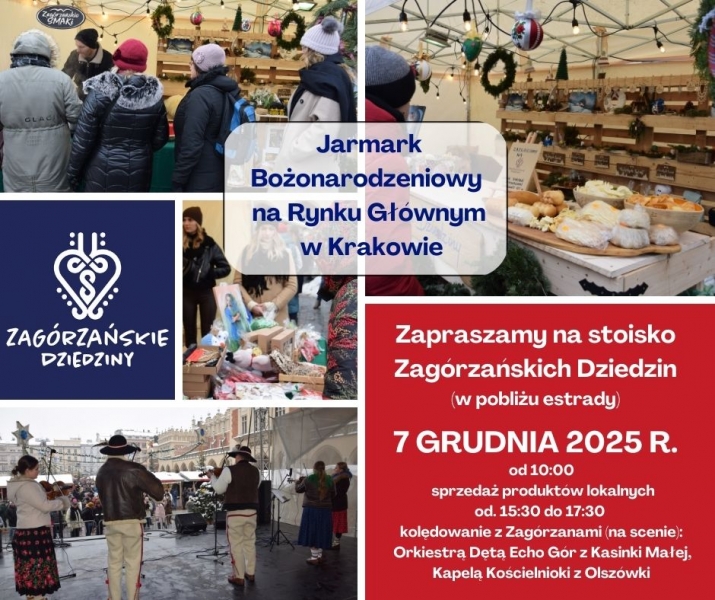 Naprawdę warto się wybrać w najbliższą niedzielę, 7 grudnia 2025 r., na Rynek Główny w Krakowie. Tam trwa już Jarmark Bożonarodzeniowy, jednak w niedzielę spotkacie na nim również Zagórzan! Szukajcie stoiska Zagórzańskich Dziedzin w pobliżu estrady.