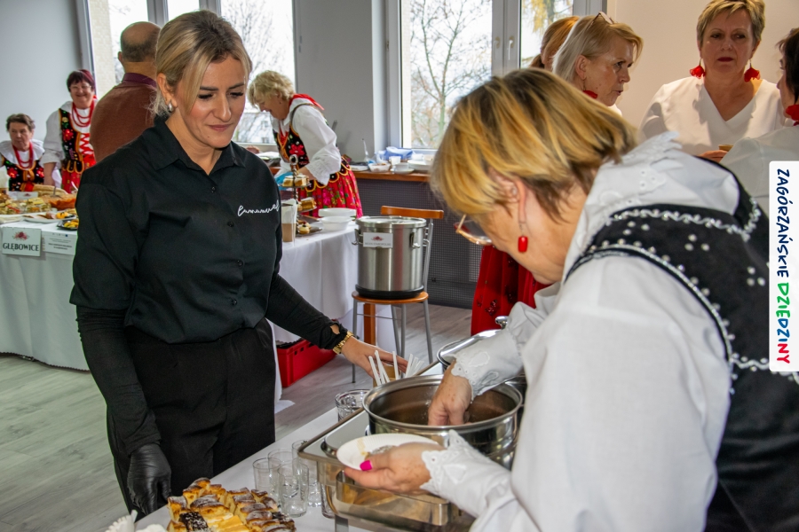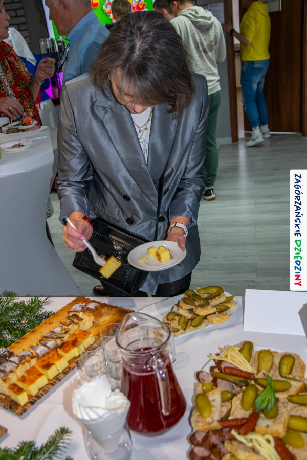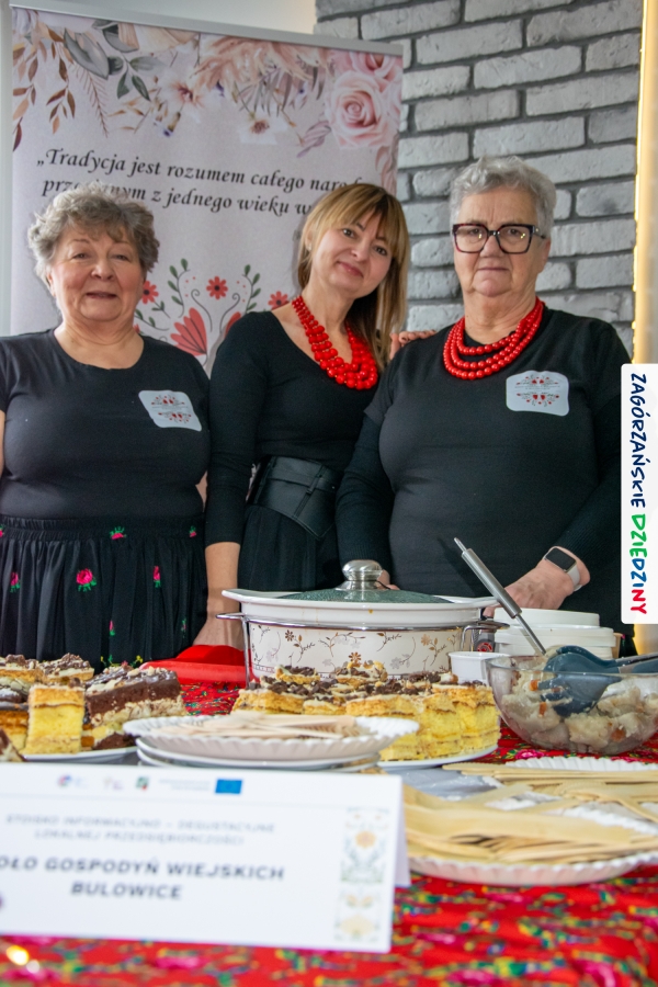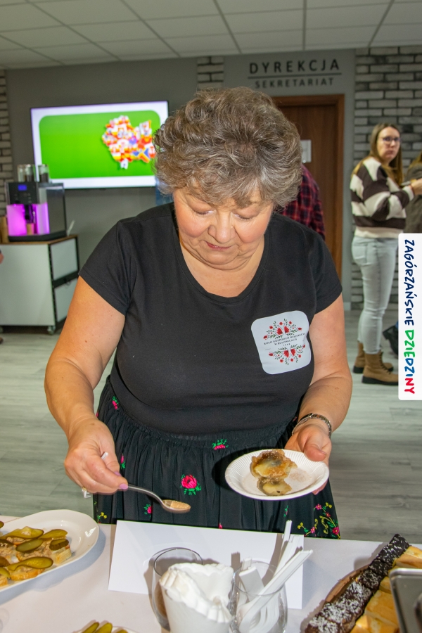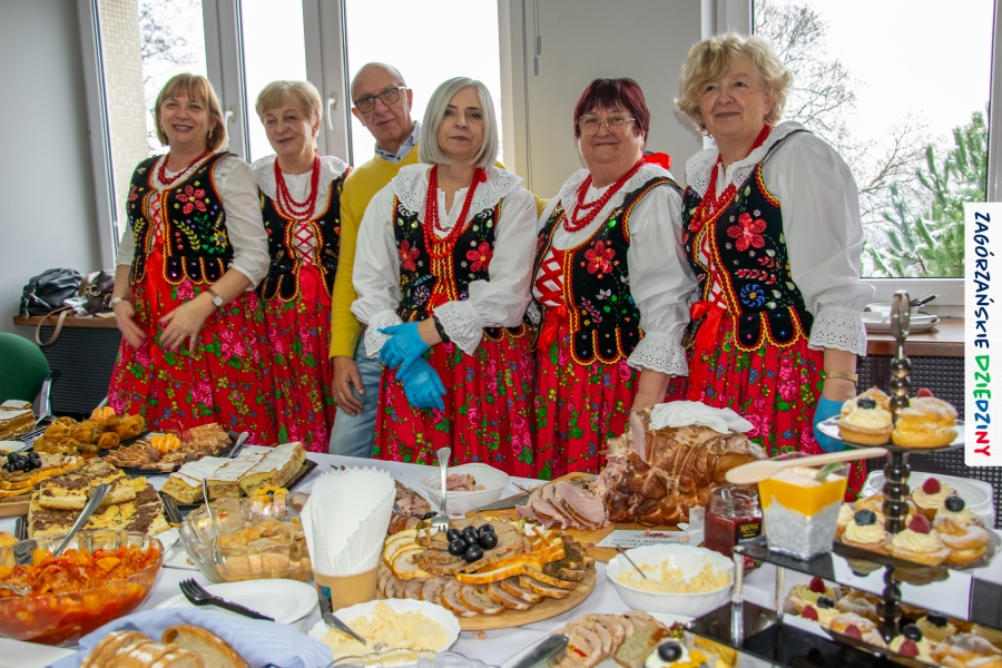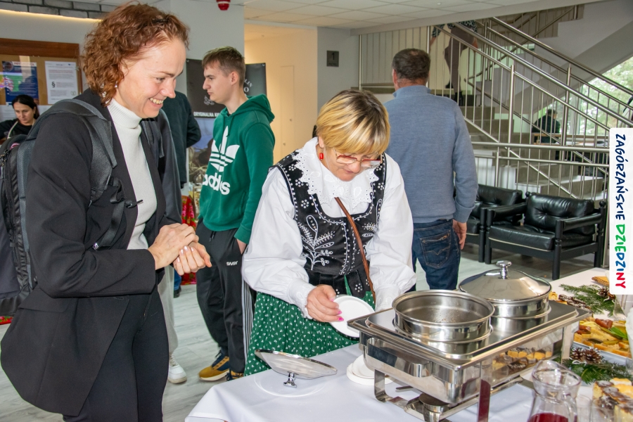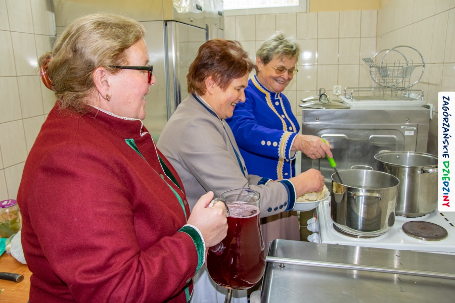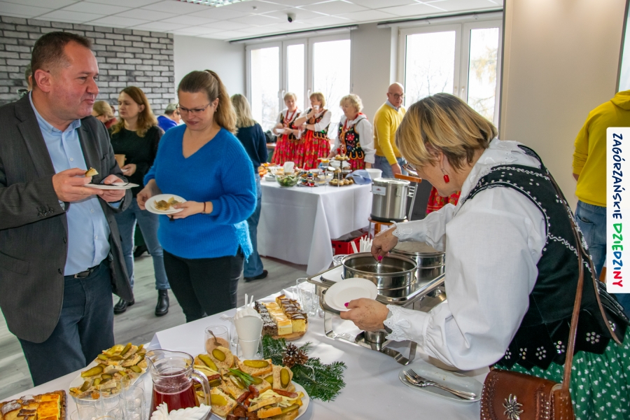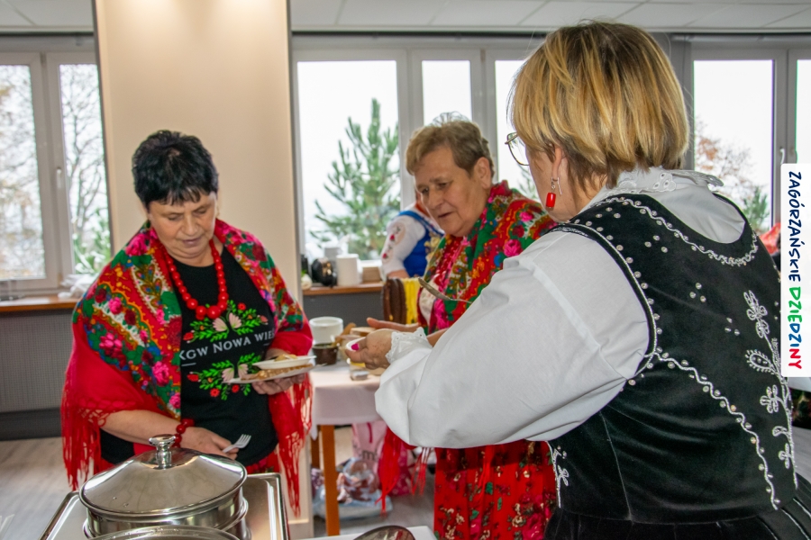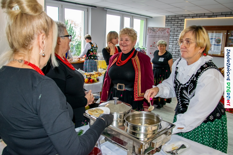 Znane ze swojej znakomitej kuchni łętowanki zawojowały wydarzenie pierogami z suszonymi śliwkami, które w 2021 r. wpisały na Listę Produktów Tradycyjnych Ministerstwa Rolnictwa i Rozwoju Wsi. Ustawiały się po nie kolejki! Wszyscy, bez wyjątku, zachwycali się ich aromatem, dopytywali o sekret smaku i podchodzili po dokładkę! Zapasy szybko topniały, a w garnku pokazało się dno… Ci, którzy przyszli do stoiska Zagórzańskich Dziedzin już pod koniec wydarzenia, niestety nie załapali się na ten świąteczny poczęstunek…. Nie odeszli jednak głodni. Śwarne Babki częstowały również przepysznymi Gorczańskimi serami podpuszczkowymi od Moniki Kubik, kanapeczkami ze smalczykiem i kiszonym ogórkiem (wszystko z własnego wyrobu!), a także domowymi ciastami. Stoły uginały się również od pyszności u innych gospodyń: @Koło Gospodyń Wiejskich w Głębowicach, @Koło Gospodyń Wiejskich Bulowice oraz u naszych sąsiadek zza miedzy, reprezentujących Gorczański Związek Podhalan im. Władysława Orkana. Nęcił też zapach kiełbasy lisieckiej i innych wyrobów regionalnych od Mądrego.
