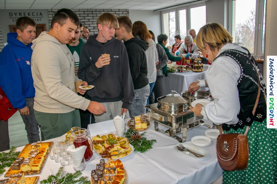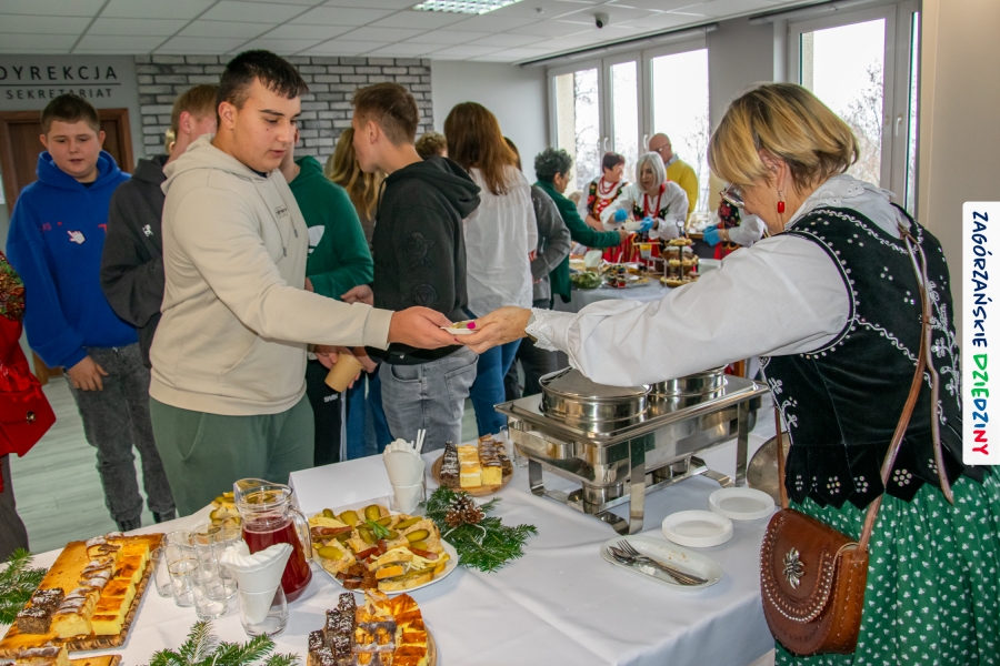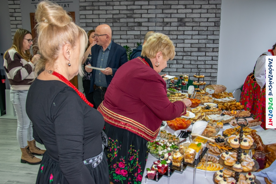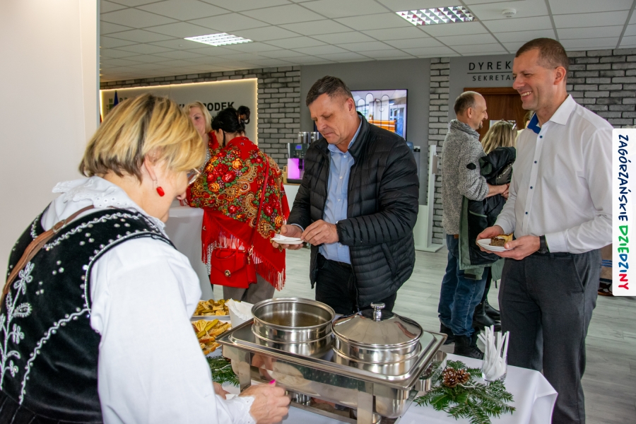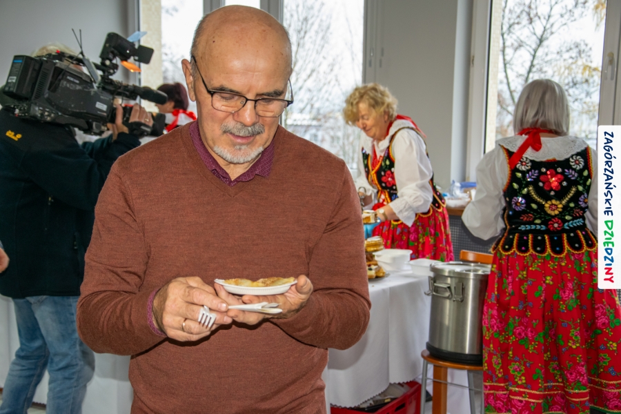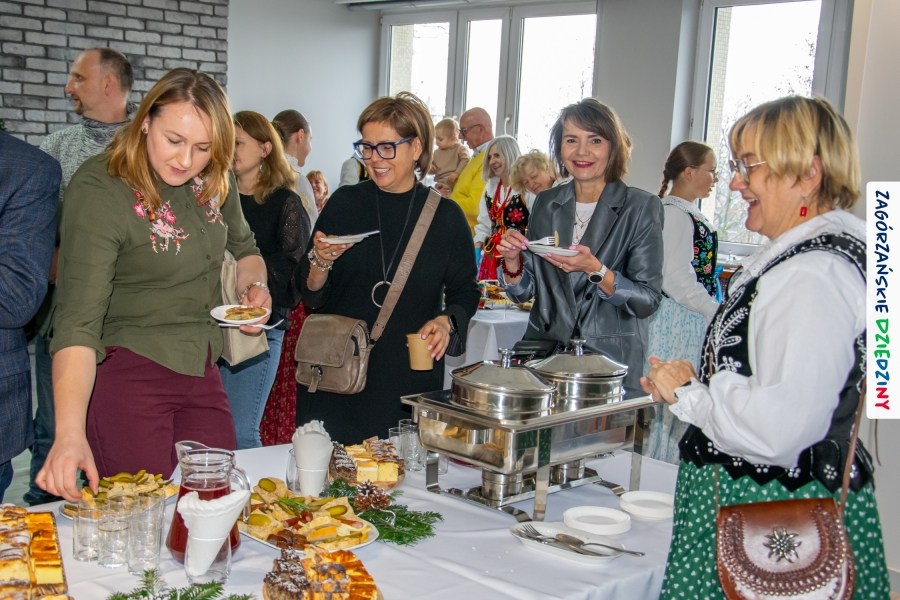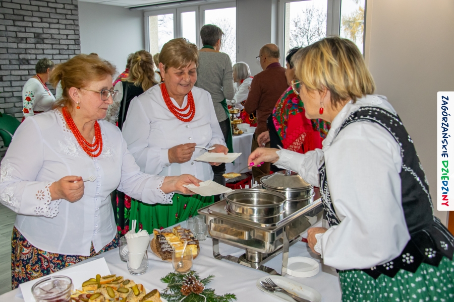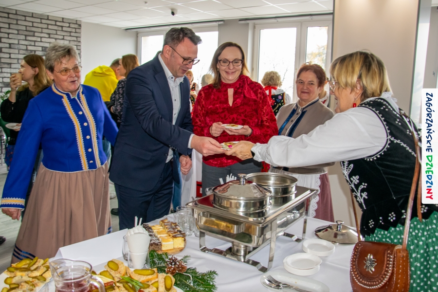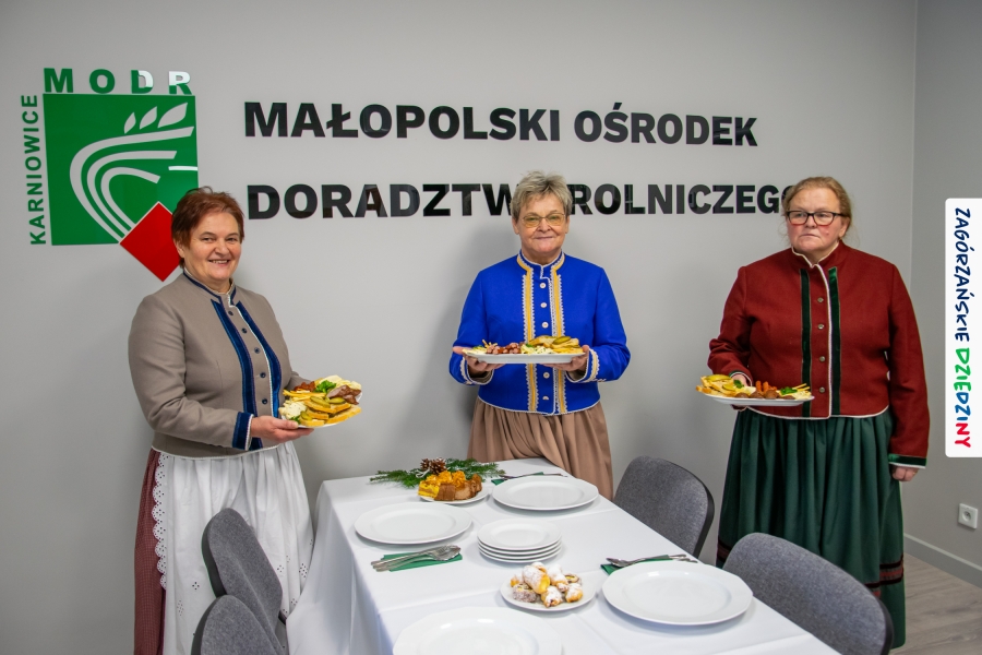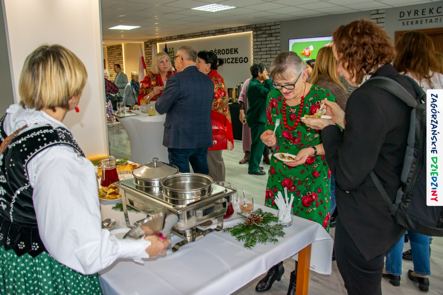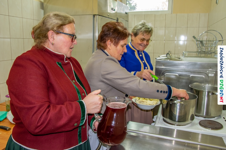 Znane ze swojej znakomitej kuchni łętowanki zawojowały wydarzenie pierogami z suszonymi śliwkami, które w 2021 r. wpisały na Listę Produktów Tradycyjnych Ministerstwa Rolnictwa i Rozwoju Wsi. Ustawiały się po nie kolejki! Wszyscy, bez wyjątku, zachwycali się ich aromatem, dopytywali o sekret smaku i podchodzili po dokładkę! Zapasy szybko topniały, a w garnku pokazało się dno… Ci, którzy przyszli do stoiska Zagórzańskich Dziedzin już pod koniec wydarzenia, niestety nie załapali się na ten świąteczny poczęstunek…. Nie odeszli jednak głodni. Śwarne Babki częstowały również przepysznymi Gorczańskimi serami podpuszczkowymi od Moniki Kubik, kanapeczkami ze smalczykiem i kiszonym ogórkiem (wszystko z własnego wyrobu!), a także domowymi ciastami. Stoły uginały się również od pyszności u innych gospodyń: @Koło Gospodyń Wiejskich w Głębowicach, @Koło Gospodyń Wiejskich Bulowice oraz u naszych sąsiadek zza miedzy, reprezentujących Gorczański Związek Podhalan im. Władysława Orkana. Nęcił też zapach kiełbasy lisieckiej i innych wyrobów regionalnych od Mądrego.